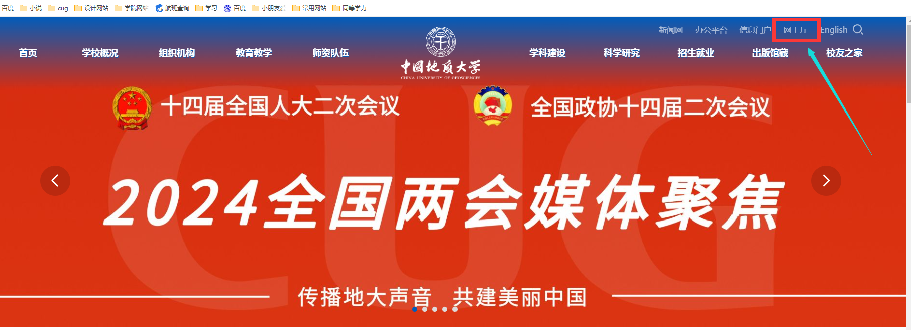 1、登录公司网站(https://www.cug.edu.cn/)或者公司网站(/)点击“网上厅”