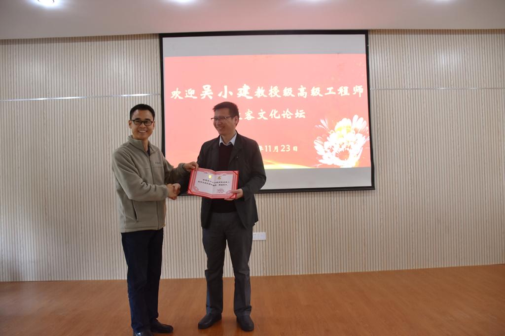 学术报告开始前,窦斌代表公司向吴小建教高颁发公司的兼职教授聘书,期待吴小建教高为公司相关学科的建设、高级人才的培养积极建言献策,为公司员工实践提供学习平台。