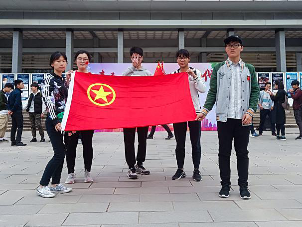 团支部与团旗合影