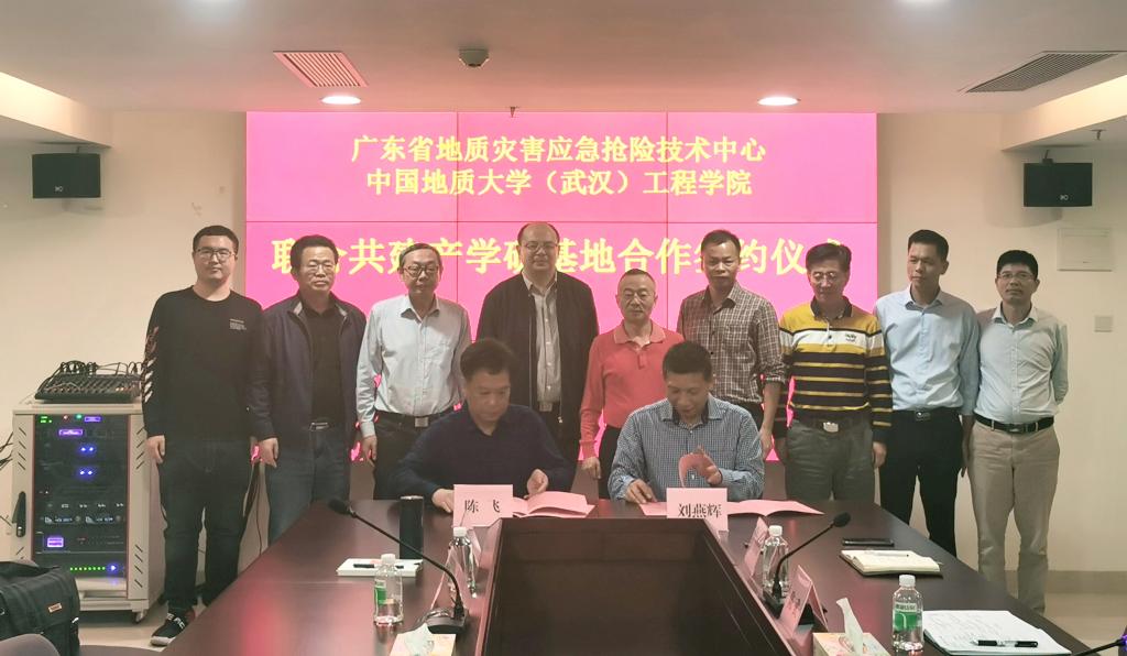 陈飞、刘燕辉签署产学研基地合作协议。根据协议,广东省地质灾害应急抢险技术中心作为sunbet官方网站(武汉)sunbet的产学研基地,双方将定期就人才的培训、技术的创新、引进与推广、联合攻关、员工实习等方面开展协商研究。