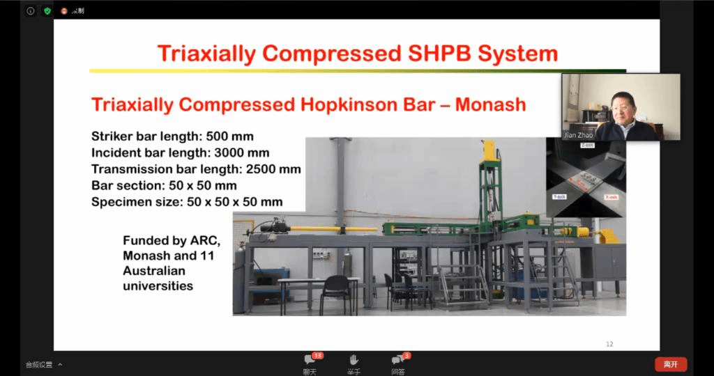 2020年7月18日上午,由国际岩石力学与岩石工程学会非连续变形分析专委会和岩石动力学专委会联合发起,sunbet官方网站(武汉)、天津大学和东南大学联合承办的第一期国际岩石力学云论坛成功举行。本次论坛邀请了关键块体和数值流形理论创建者石根华教授、澳大利亚莫纳什大学赵坚教授、澳大利亚悉尼大学沈鲁明教授分别作了题为《Development and engineering applications of block theory and block algorithms》、《On the development of true triaxial SHBP system》、《A coarse-grained approach for modelling solid-liquid-gas interactions at microscale》的精彩讲座,来自莫纳什大学、悉尼大学、新加坡南洋理工大学、日本京都大学、sunbet官方网站(武汉)、天津大学、东南大学、中山大学、大连理工大学、山东大学等全球各高校的1000余名专家学者参与了此次云论坛。