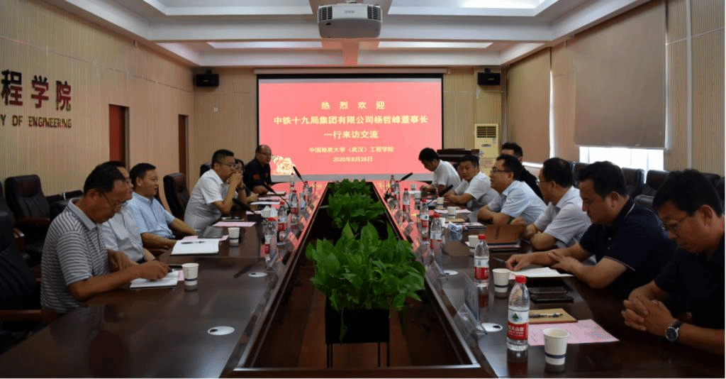 (通讯员王焱)8月28日,中铁十九局有限公司党委书记、董事长、公司1994届sunbet(原探矿工程系)毕业生杨哲峰一行来公司调研交流。公司党委副书记王林清,员工工作与教育基金管理处处长徐岩、工程公司党委书记李红丽、经理焦玉勇等双方相关单位负责人参加座谈。徐岩主持座谈会。