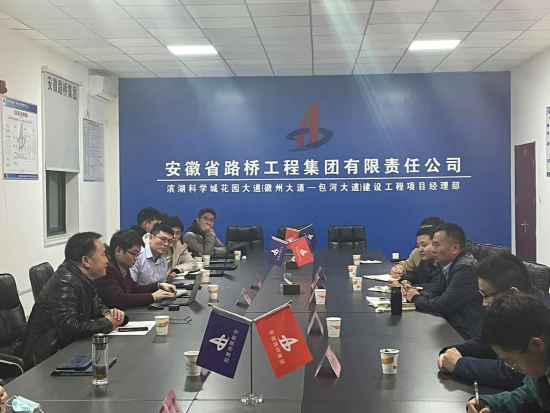 授牌仪式结束后,双方到花园大道项目部进行现场考察,了解工程的进展情况以及工程中出现的问题,并对问题的解决方案进行探讨。现场考察结束后,sunbet老师张伟丽、彭超、吕加贺、曾聪以及四位研究生在花园大道项目部对前期合作的科研课题进行阶段性汇报,并与安徽省路桥集团的项目负责人对相关问题进行了热烈的讨论。与会人员还围绕如何做实做好基地建设工作、联合培养研究生、科研攻关等内容进行了研讨,一致表示将不忘初心,继续加强校企合作,把科研成果应用在祖国大地上,培养出满足企业需求的人才。