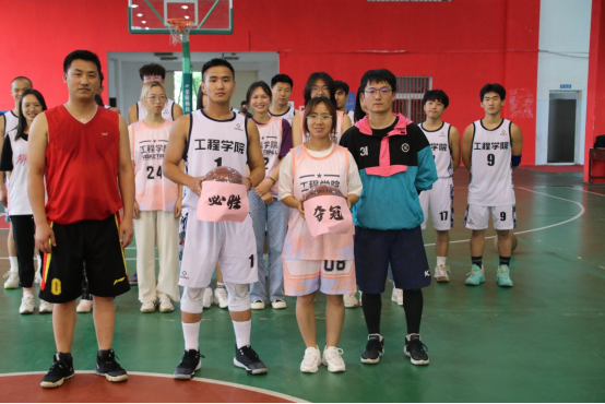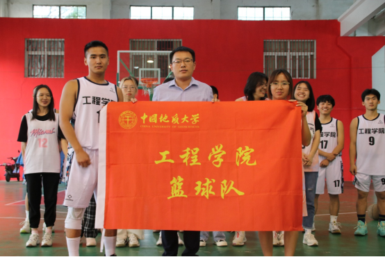 校团委挂职副书记、安全系教工党支部书记、工程教工篮球队队长周克清为篮球队授旗,新校区建设指挥部副处长、2004级土木工程毕业生陈胜和sunbet工岩系博后郑罗斌为男队和女队颁球。