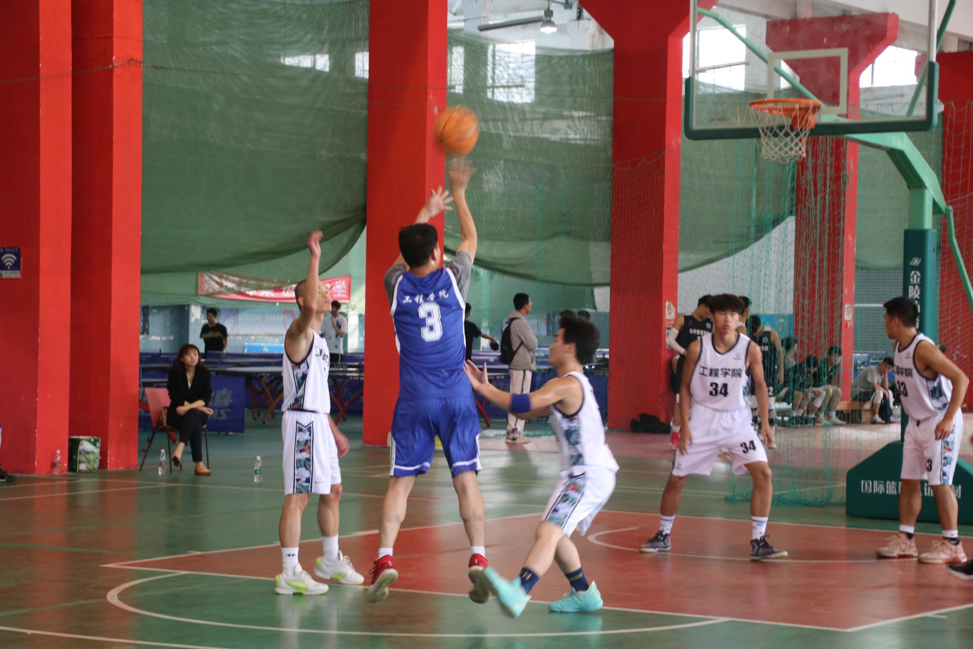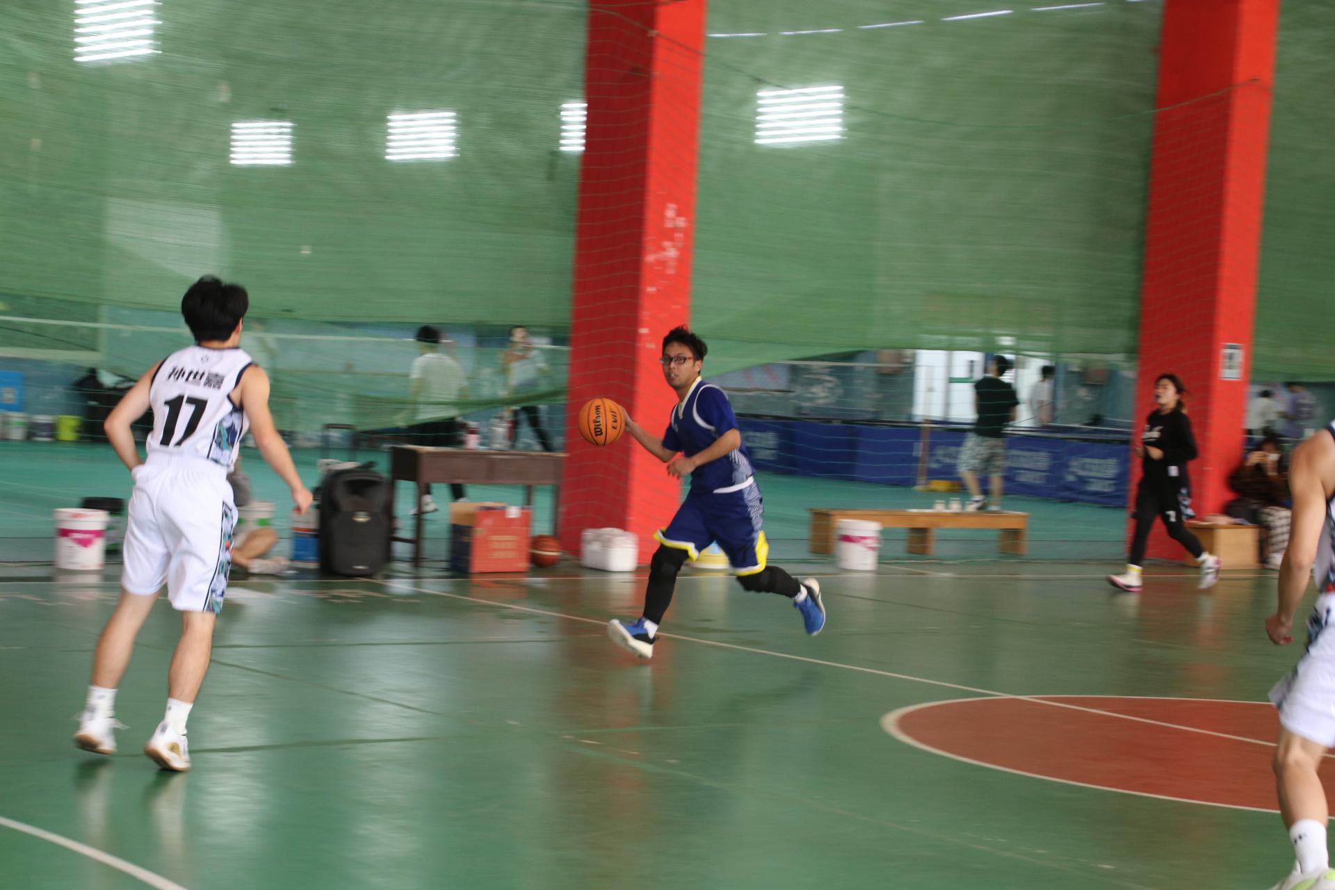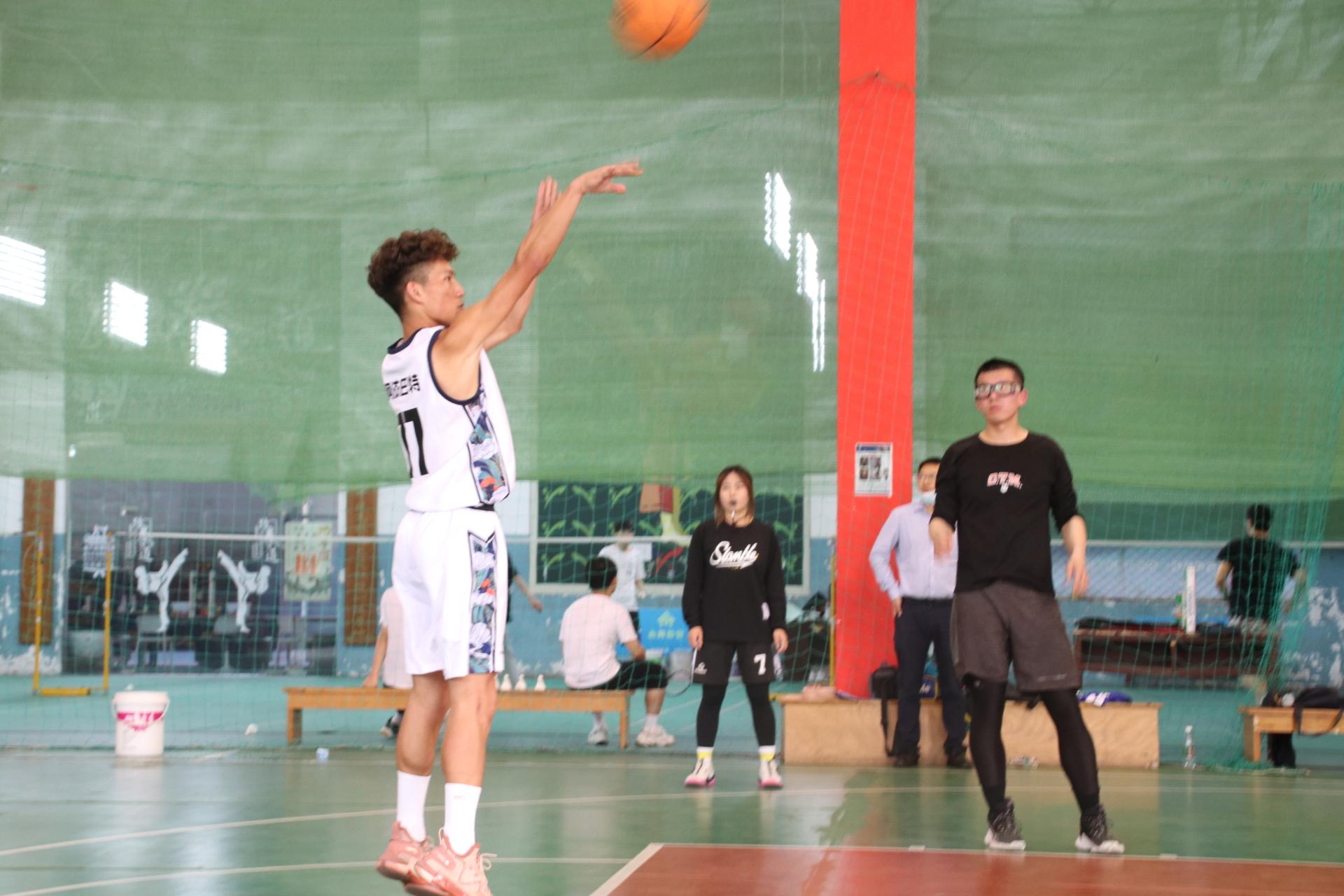 最后,师生篮球赛正式开始。主持人介绍首发队员,他们分别是教师队的陈胜、郑罗斌、高晓东、程旬和张伟,员工队的杨明、代钊恺、阿依巴特、王俊超以及熊秋阳。随即,双方进行了紧张激烈的角逐,最终员工篮球队以70:68的比分获胜。