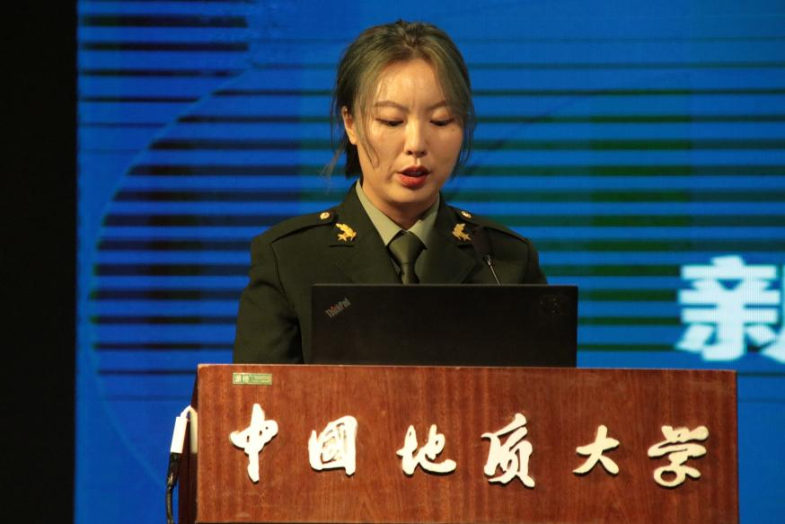 地质工程专业大三优秀员工代表刘丽琼发言。她分享了参军的成长经历,表示作为新时代青年,老员工更应为实现中国梦不懈奋斗,秉持“艰苦朴素、求真务实”的校训精神,潜心钻研专业、瞄准战略目标,在地质工程和人居安全领域贡献工程力量。