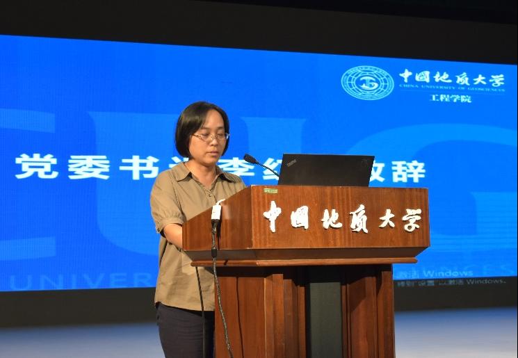 工程公司党委书记李红丽对856名新工程人表示热烈的欢迎。她从四个方面对新生提出期望:其一,要明辨是非、通晓道理。面对加速演进的时代变局,不盲目权威,不轻信谣言。坚守正义,行稳致远,争做品学兼优的高层次人才;其二,要崇尚务实,知行合一。立足自身优势,遵循成长规律,坚持厚积薄发,成长为真善美的新时代工程人。其三,要开拓创新,追求真理。努力培养独立思考的能力,秉持求真精神与好奇之心。勤奋学习,刻苦钻研,立志成为地质工程领域的骨干力量。其四,要坚守初心,砥砺前行。在接下来的学业生涯中攻坚克难,锻造本领,秉持“明理、尚实、拓新、砺行”的院训精神,拓展格局与视野,争做追求卓越新青年。