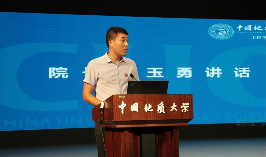 sunbet经理焦玉勇教授发言。他指出,sunbet是培养人才的重要阵地,七十年的厚积薄发,培养无数优秀学子、书写工程内涵。他强调,当今新时代面临着伟大变革,学子们要胸怀大志、秉持真理,不断拓宽视野,提升人文素养与科研能力;要立于当下,着眼未来,为攻克地质工程领域难题不懈奋斗、贡献力量;在求学之路上,要做良善之人、栋梁之材,培养完整人格,勇担时代使命。