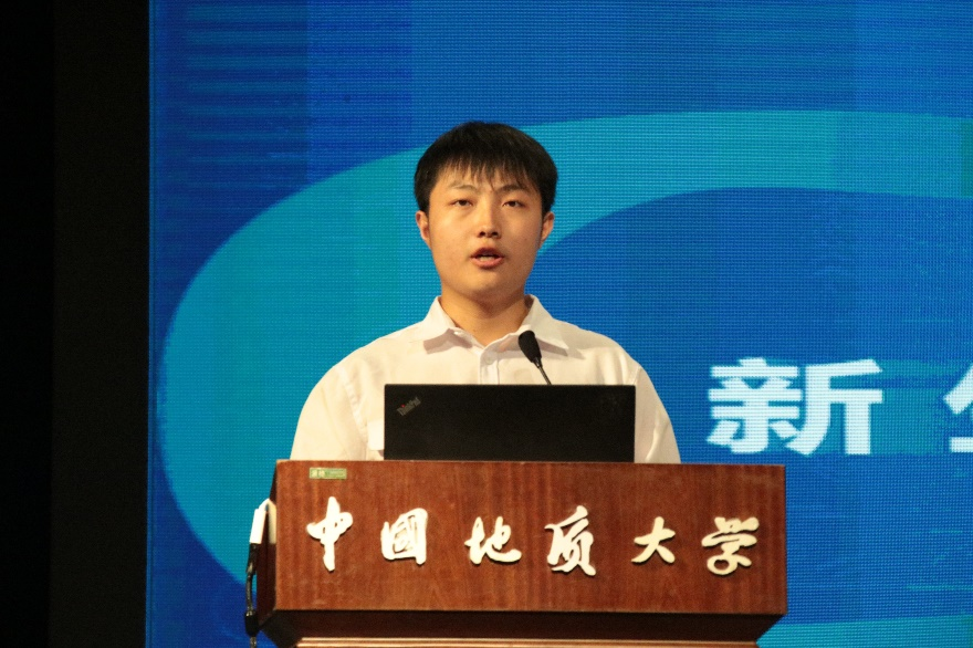 新生代表于耀捷发言。他说,作为一名新生,要不负“锤炼本领,迎接挑战”的殷殷期盼,承载sunbet七十年砥砺奋进、追求卓越的工匠精神,努力把自己培养成一名德才兼备的新型人才,展现新时代地大人的风采。