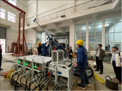 3月6日下午至3月8日上午,四川诺克钻探机械有限公司技术骨干和公司青年教师携手在钻探大厅共同组装完成了Rock-800E钻机。在四川诺克钻探机械有限公司技术总工蔡平基、副总工陈银的指导下,公司青年教师均完成了上机操作培训。