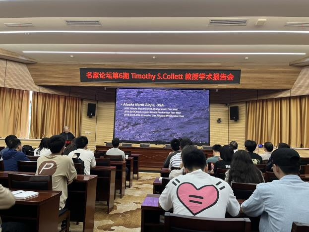 Timothy Collett教授对公司的诚挚邀请表示衷心感谢,并作了题为“Geologic controls on the formation and occurrence of highly concentrated gas hydrate reservoir systems and impact on gas hydrate production”的精彩报告。报告详细介绍了天然气水合物基础知识,对天然气水合物油气系统勘探情况进行了详细分析,以实例的形式系统总结了美国墨西哥湾、中国南海、日本南海海槽、韩国郁陵盆地和印度KG盆地的水合物勘探和开采情况,并对美国阿拉斯加冻土区前期和当前正在开展的水合物调查及试采情况进行了分享。最后,结合其丰富的现场调查研究经验,对未来水合物产业化开发面临的关键技术难题和研究方向进行了展望,并积极鼓励与会人员就报告内容开展交流和讨论。