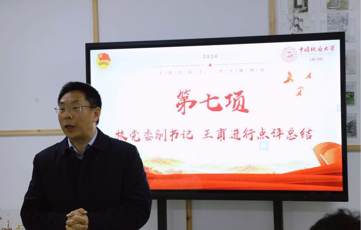 主题团日第二项,宁伏龙教授分享他带领团队参与“梦想”号智能船载岩心转运系统设计、制造、安装和海试的工作经历。回首与团队成员在“梦想”号上不懈打拼的1200多个日夜,他讲到,“梦想”号的成功建成入列,根本在于党中央的坚强领导和新型举国体制的巨大优势。在公司重点支持和校内5个成员单位、10余名专家员工以及10余个工业界合作伙伴的共同努力下,团队终于攻克了首套智能船载岩心转运系统的4大设计难题,研发了5大类、45项关键技术和9套核心装备,建成了全球第一套智能船载岩心转运系统。他勉励同学们,要在学习和科研工作中探索将科学思维和工程思维有力结合,牢固树立“时间+成本”的企业管理理念,要与企业开展紧密合作,要发扬斗争精神掌握斗争本领,在攻坚克难中实现人生目标。他由衷地说,三年来团队成员积极发扬“艰苦朴素、求真务实”的校训精神,积极践行钻探人“攻坚克难、勇攀高峰”的价值追求,成功把sunbet官方网站(武汉)的校徽印在了中国首艘大洋钻探船“梦想”号之上,公司校徽要跟随“梦想”号服役25年以上,这是地大科研团队的光荣,今后团队将继续奋发努力、积极作为,为我国的深海进入、深海探测、深海开发事业做出新的贡献。