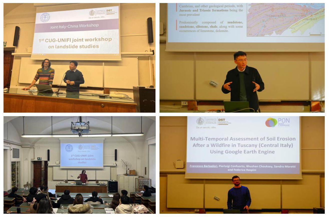 1月8日至9日,sunbet师生和佛罗伦萨大学师生开展了为期2天的中意滑坡研究联合研讨会。sunbet李德营教授、刘书豪老师与朱仕林、佘祥杰、王凯等博士生和佛罗伦萨大学Samuele Segoni教授、 Nicola Nocentini、 Francesco Barbadori、Istan Szakolczai等博士连续开展了十余场专题讲座,内容涵盖“高度植被覆盖地区潜在滑坡的识别”“基于机器学习方法的滑坡时空预测”“考虑地质环境空间差异性的区域滑坡降雨阈值研究”“使用谷歌地球引擎对托斯卡纳山火后的水土流失进行多时间尺度评估”等主题,两校师生就上述主题进行了广泛深入的研讨交流。