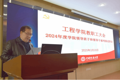 经理王亮清代表公司领导班子做2024年度述职述廉报告。公司领导班子成员李红丽、王亮清、窦斌、倪晓阳、章广成、高晓东分别进行个人述职述廉。与会师生对公司领导班子及领导干部进行民主测评。