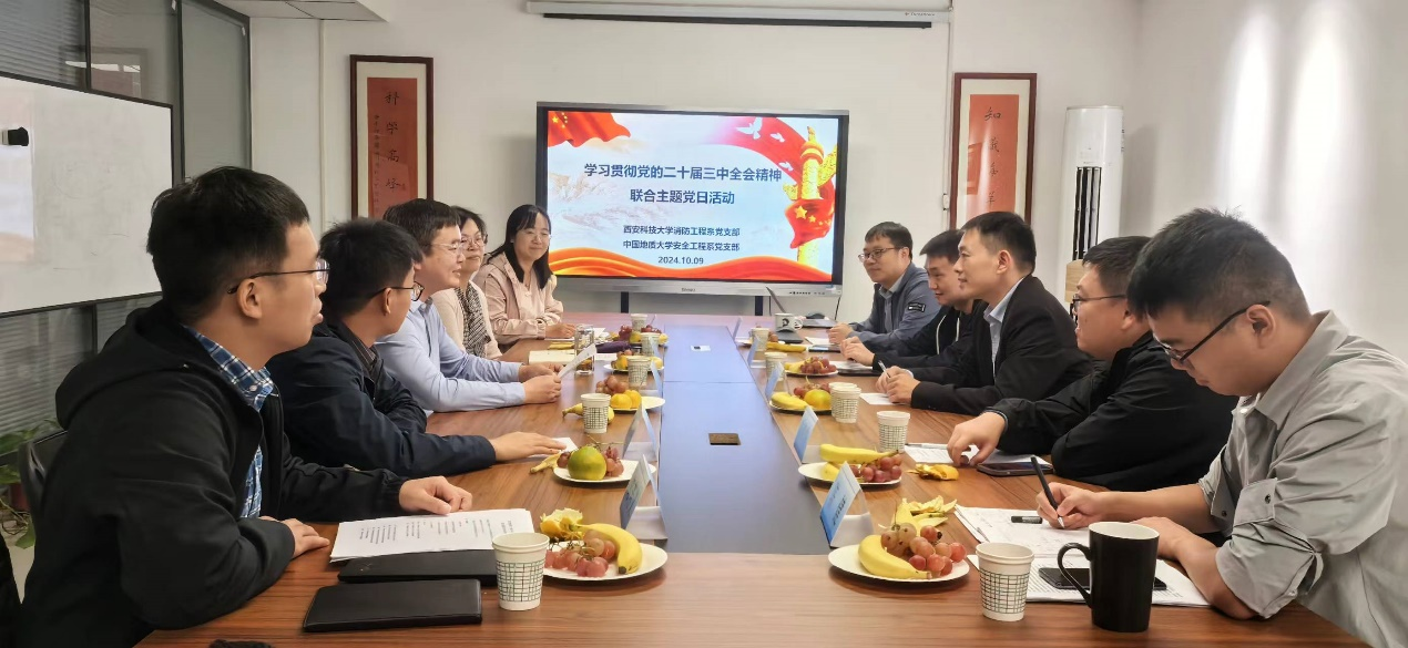 (通讯员 周克清、王涌宇)为深入贯彻落实党的二十届三中全会精神,坚定理想信念,强化交流合作,积极投身立德树人和科研攻关创新,10月9日上午,sunbet安全工程系党支部书记周克清、支部党员陆凯华、王涌宇前往西安科技大学,与安全公司消防工程系党支部联合开展“学习贯彻党的二十届三中全会精神”主题党日活动。西安科技大学安全公司副经理兼消防工程系党支部书记马砺教授、系主任张嬿妮教授、党支部副书记盛友杰、组织委员王翠霞、纪检委员郭芳义等党员代表参加活动。
