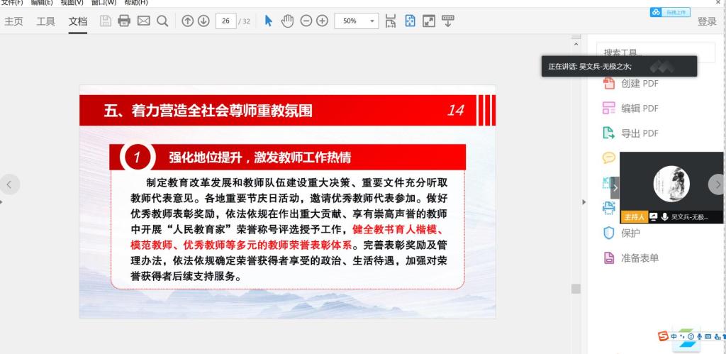 首先,吴文兵同志带领全体党员认真学习了《关于加强和改进新时代师德师风建设的意见》,用PPT的形式向大家介绍了加强师德师风建设的总体要求及具体措施,并号召大家勠力同心,努力奋斗,共同建设一支高素质专业化教师队伍,为培养德智体美劳全面发展的社会主义建设者和接班人做贡献。尤其是在疫情期间,更应该体现人民教师的责任和担当意识。