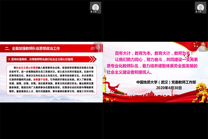 20204月29日下午,工程地质与岩土工程系党支部利用腾讯会议软件开展了主题党日活动,共有35名支部成员参加。本期主题党日活动的主题是:(1)学习“国家总体安全观”;(2)学习中共中央《关于加强和改进新时代师德师风建设》。活动由党支部副书记文新主持,副经理王亮清等工岩系全体党员参加了主题党日活动