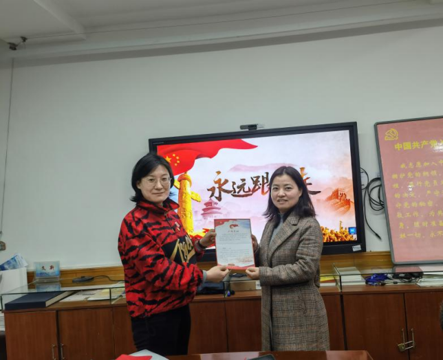 最后,全体党员为陈飞、张美霞和黄静三位同志过“政治生日”,为三位同志颁发“政治生日”纪念卡。