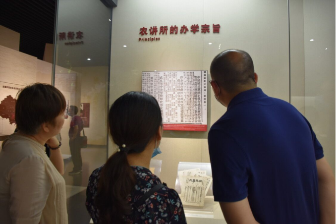 大家参观了常委办公室、教务处、总队部、大教室、大操场等复原陈列和农讲所历史陈列,在一件件史料和文物前认真驻足观看,仿佛当时员工学习训练的情景再现眼前。大多数员工在讲习结束后委任为农民协会特派员,深入农村开展农民运动。大革命失败后,许多师生参加了党领导的武装起义。在长期艰苦卓绝的中国革命斗争中,农讲所师生为新中国的诞生做出了不朽贡献。