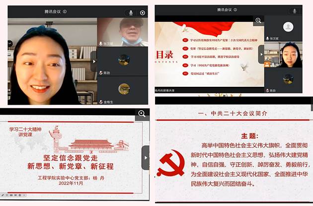 (通讯员 张汉斌)11月25日上午,sunbet实验中心党支部开展了支部主题党日活动。本次活动主题是“学习宣传贯彻落实党的二十大精神”。本次活动采取线上腾讯会议形式,与安全工程专业本科生党支部党员代表联合开展,实验中心入党积极分子鲁莎同志列席了会议。活动由实验中心党支部支部书记杨丹同志主持。